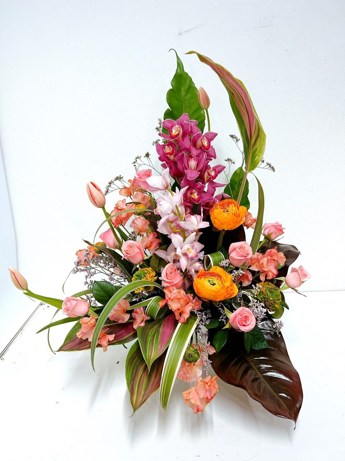 写真はイメージですのでこちらのアレンジではありません。ご注文いただいた際は季節の花材、枝物、葉物、花物を入れて最高のアレンジをご予算に合わせてお作り致します